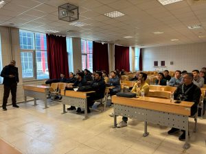 Cezayir Chlef Hassiba Benbouali Üniversitesi, Teknoloji Fakültesi Elektrik-Elektronik Mühendisliği bölümünden misafir öğretim üyesi olarak bölümümüzde bulunan Doç. Dr. Haroun Errachid Adardour, bölümümüz öğrencilerine “Bağlantılı Dünyamızın Merkezinde Telekomünikasyon: Milimetre Dalgalarını Kullanan Yüksek Hızlı Optik Sistemin Tasarımı.” konusunda bilgilendirici bir seminer verdi. Ayrıca ziyareti sırasında, Telekomünikasyon Laboratuvarımızda verimli bir ortak deneysel çalışma yürütme, ortak araştırma çabalarımızı güçlendirme ve gelecekteki işbirlikleri için yeni perspektifler keşfetme fırsatı da bulduk.